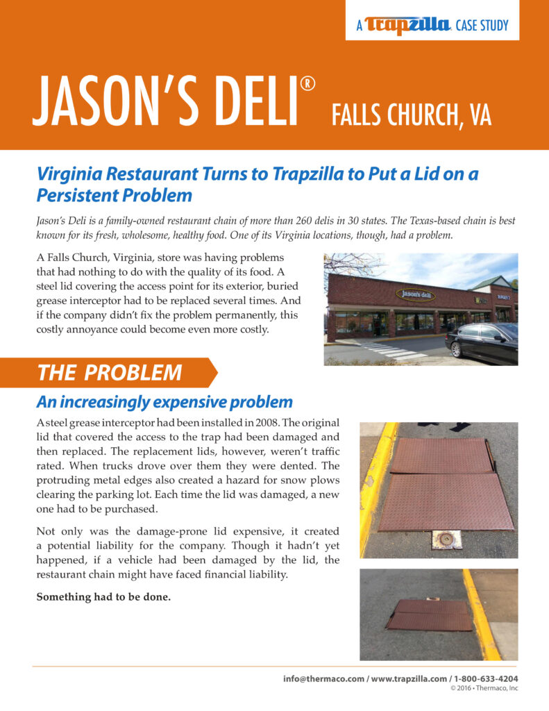 Solution: Jason’s Deli discovered a Trapzilla would provide grease capacity equal to the old steel interceptor in less space. This means it would fit into the existing hole without extensive additional excavation. Additionally, using Trapzilla’s One-Pour system made installing the traffic-rated solution quick and efficient.